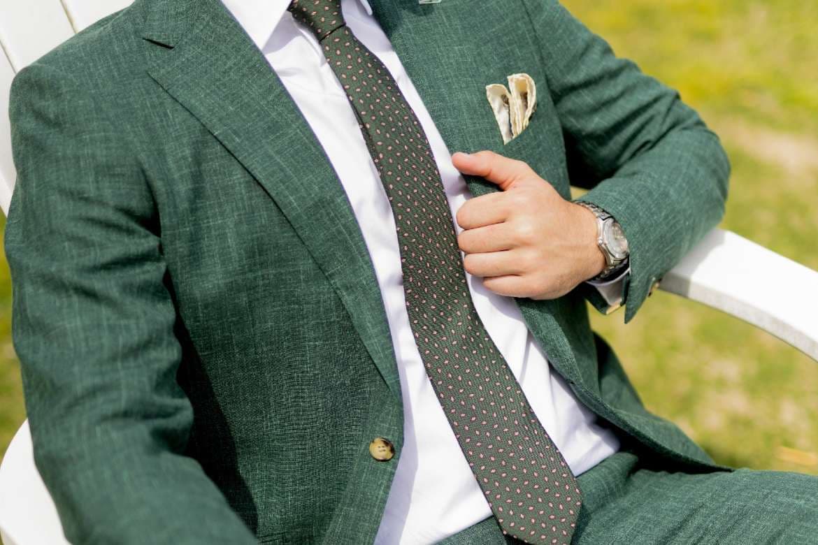 Dark colors absorb more heat from the sun, leaving you feeling uncomfortably warm. Lighter colors, like beige, light grey, or pastels, reflect sunlight, helping you stay cool. Choosing a light-colored suit will help you make a fashion statement and ensure a more comfortable experience during hot weather. Pair your light-colored suit with a complementary dress shirt and tie to exude elegance without breaking a sweat.